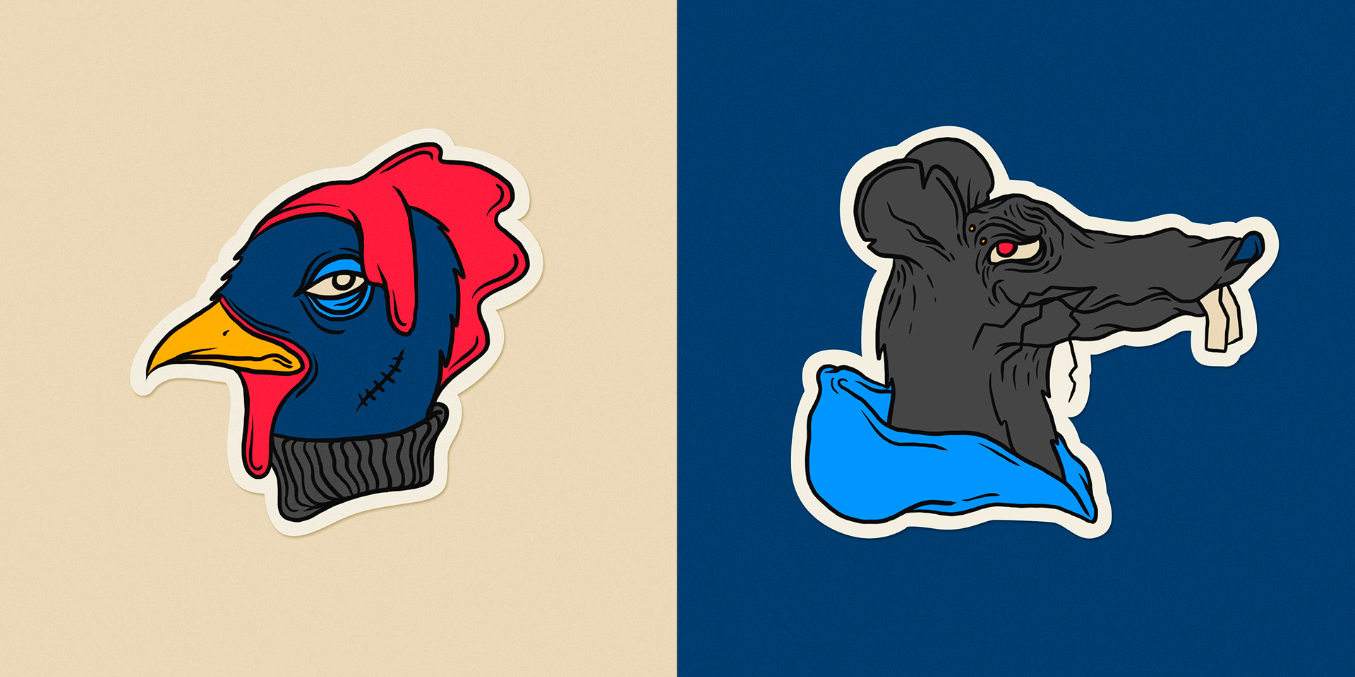 Série d'illustrations d'animaux, inspirée des collections de stickers.